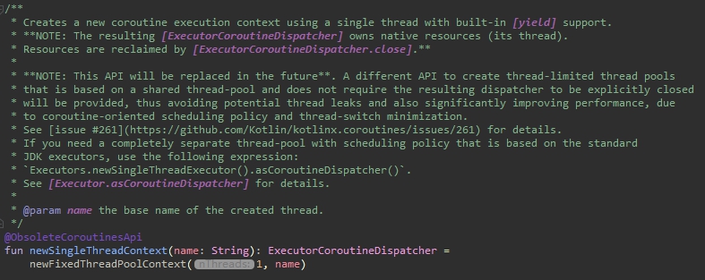 于是我们来到了这个Issue,我们只是通过协程将UI线程代码在新的执行线程执行,所以我们可以按照提到的内容用Executors.newSingleThreadExecutor().toCoroutineDispatcher()来替换。所以我们的代码是这样的。